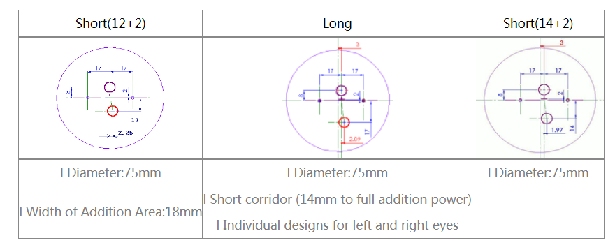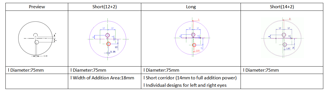 Semi-finished Progressive lens: Short (12+2), Long, Short (14+2)